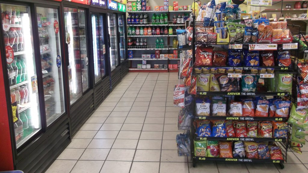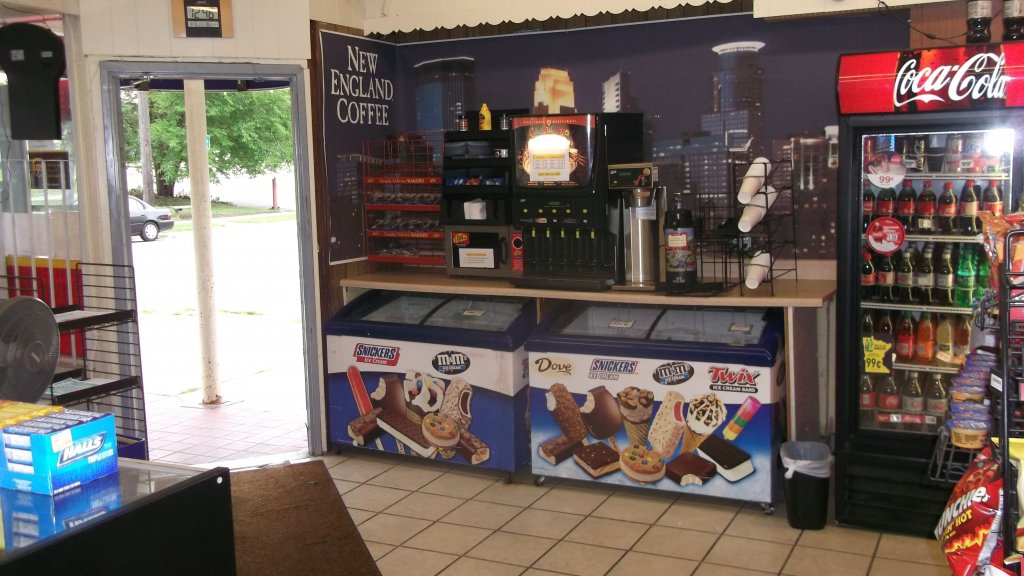 We have a wonderful selection of sodas and water, hot coffee and energy drinks, a small amount of groceries - milk, coffee, bread and eggs. Plenty of snacks and candies to hit that sweet tooth. We have household and automotive supplies. We sell non-menthol cigarettes and unflavored tobacco products, as well as 3.2% Alcoholic beverages. And much more!